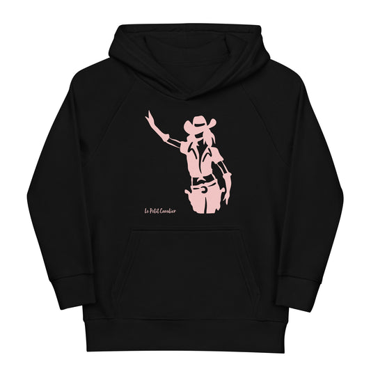 Sweat capuche enfant écologique - COWGIRL Logo avant Rose