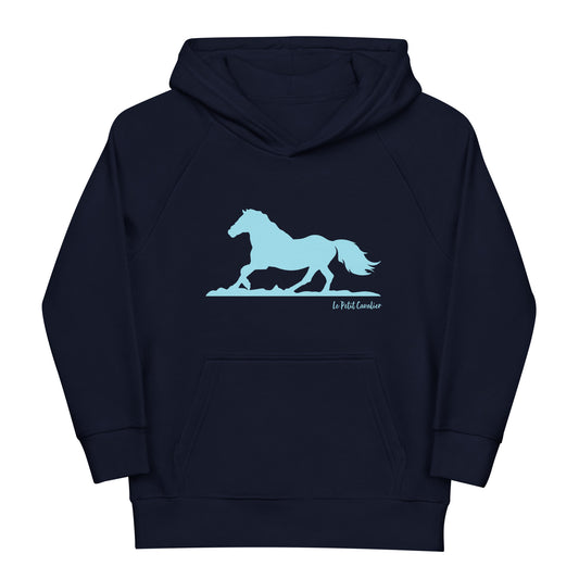 Sweat capuche enfant écologique - HORSE cheval Logo avant Bleu